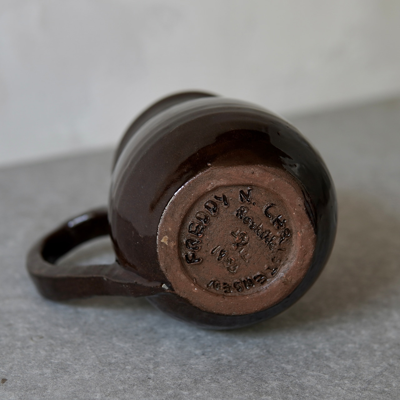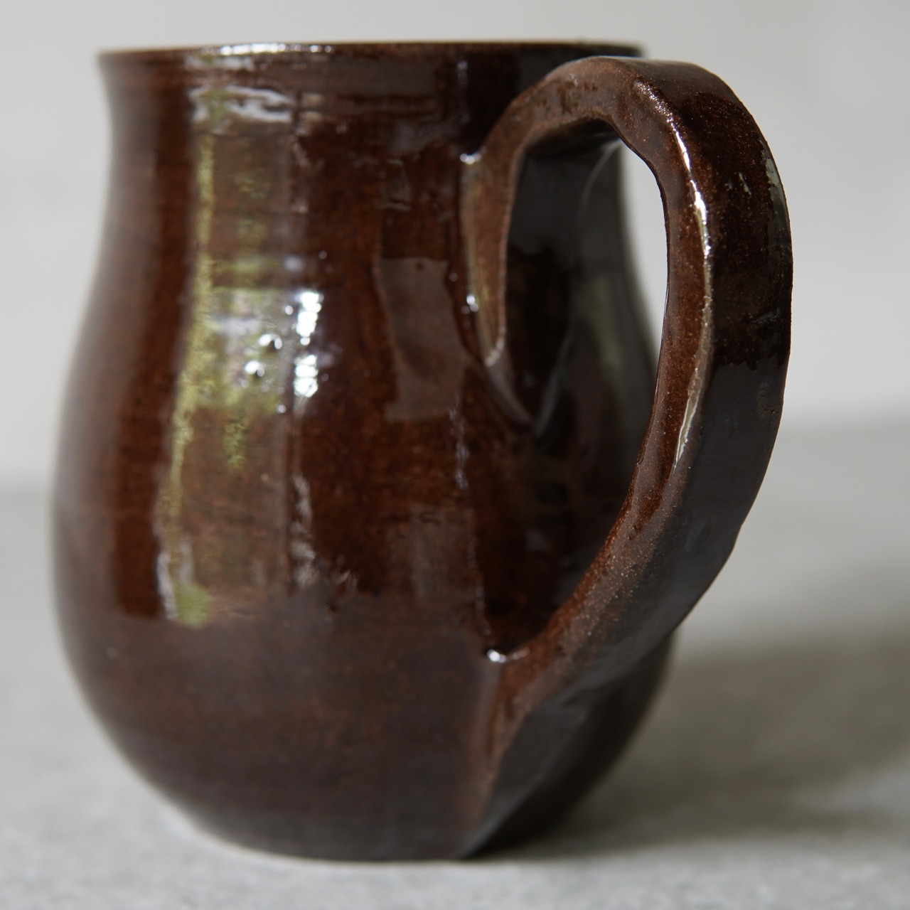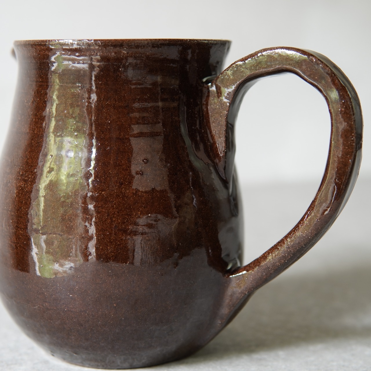 持ち手が広くプリミティブな造形もユニークで、飴釉薬の色合いも魅力的。