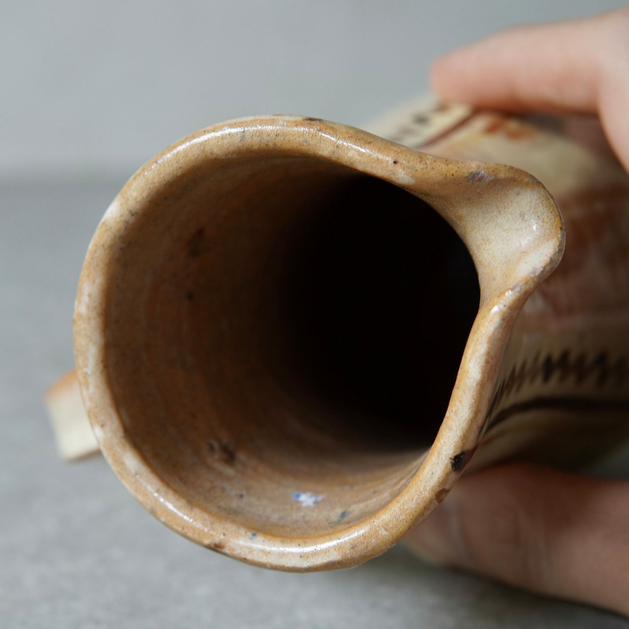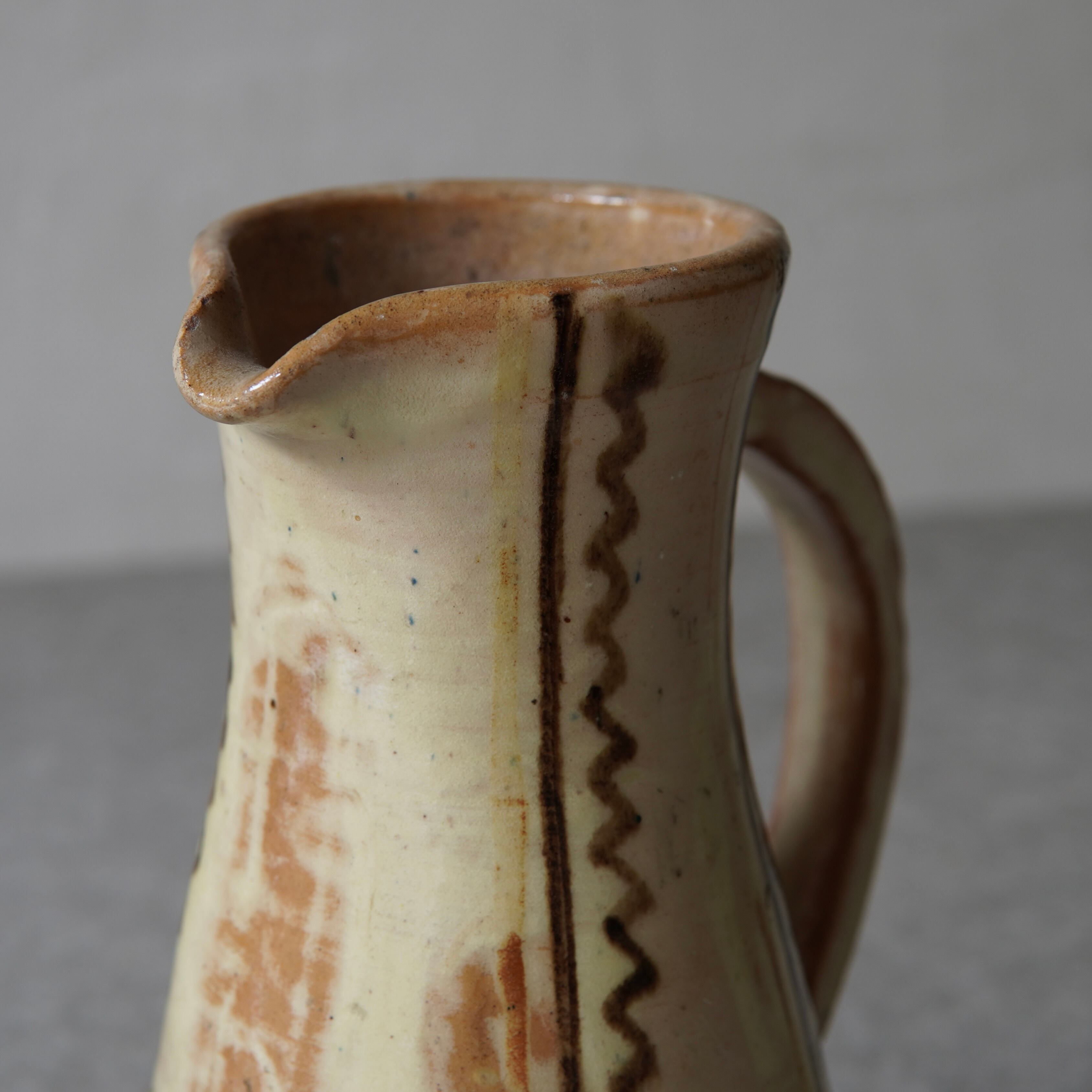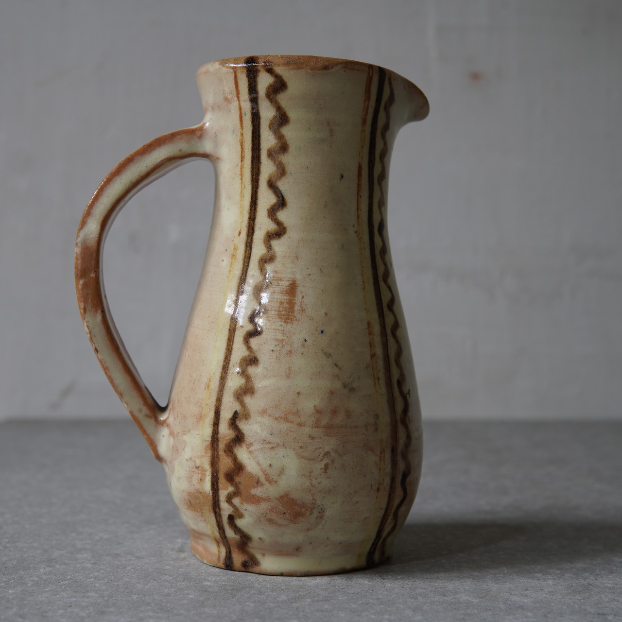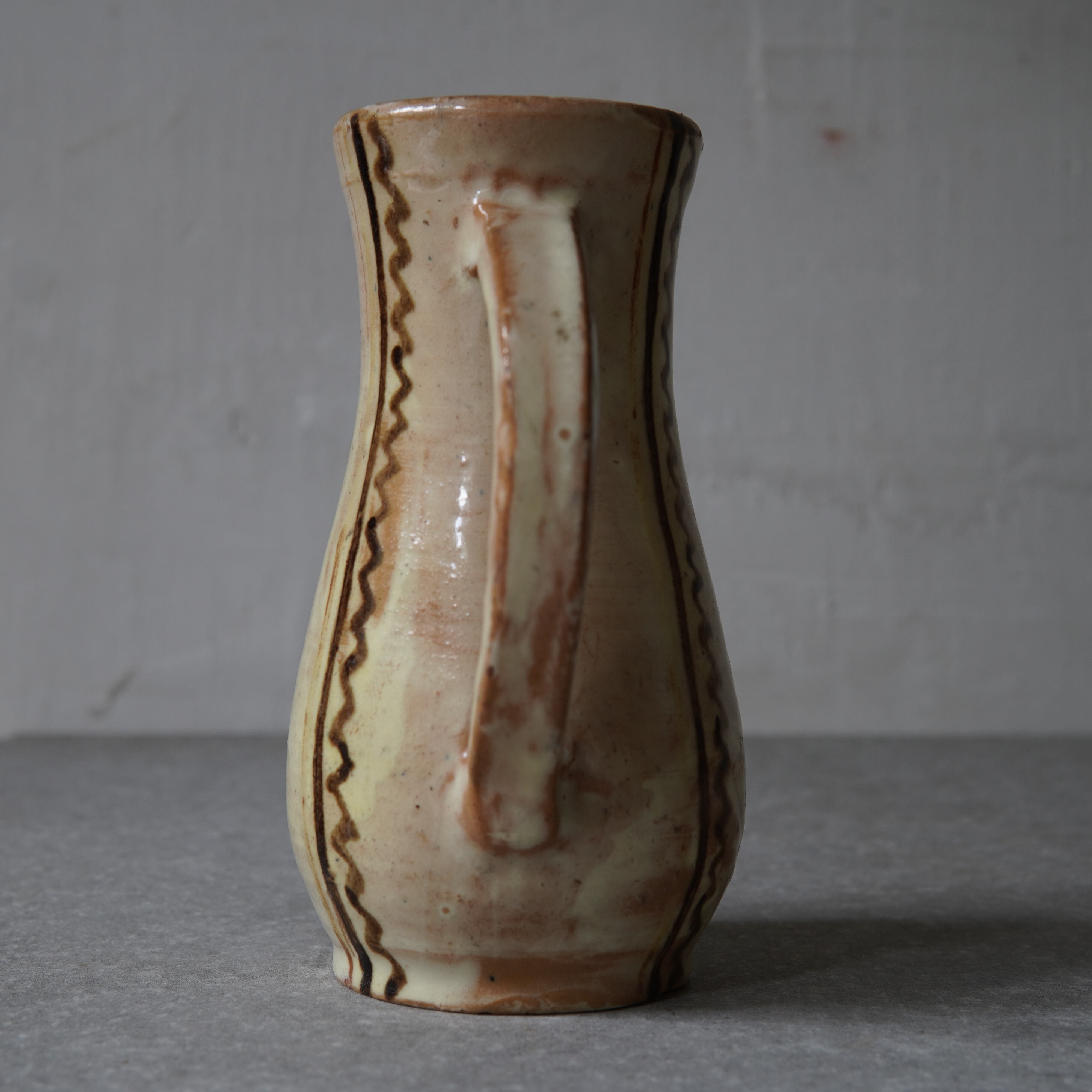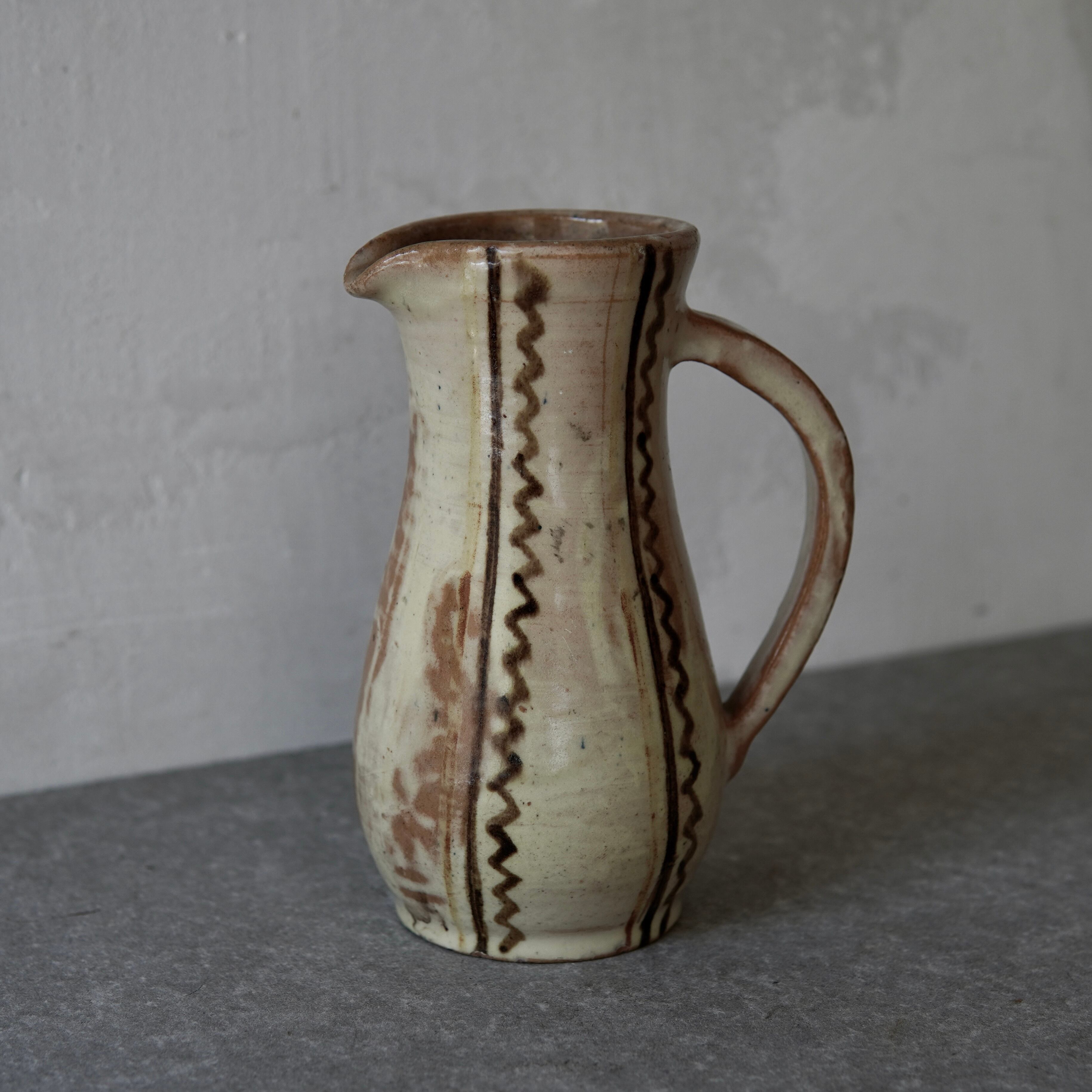 クリーム色の柔らかい釉薬にヨロケた線がバランス良く、
