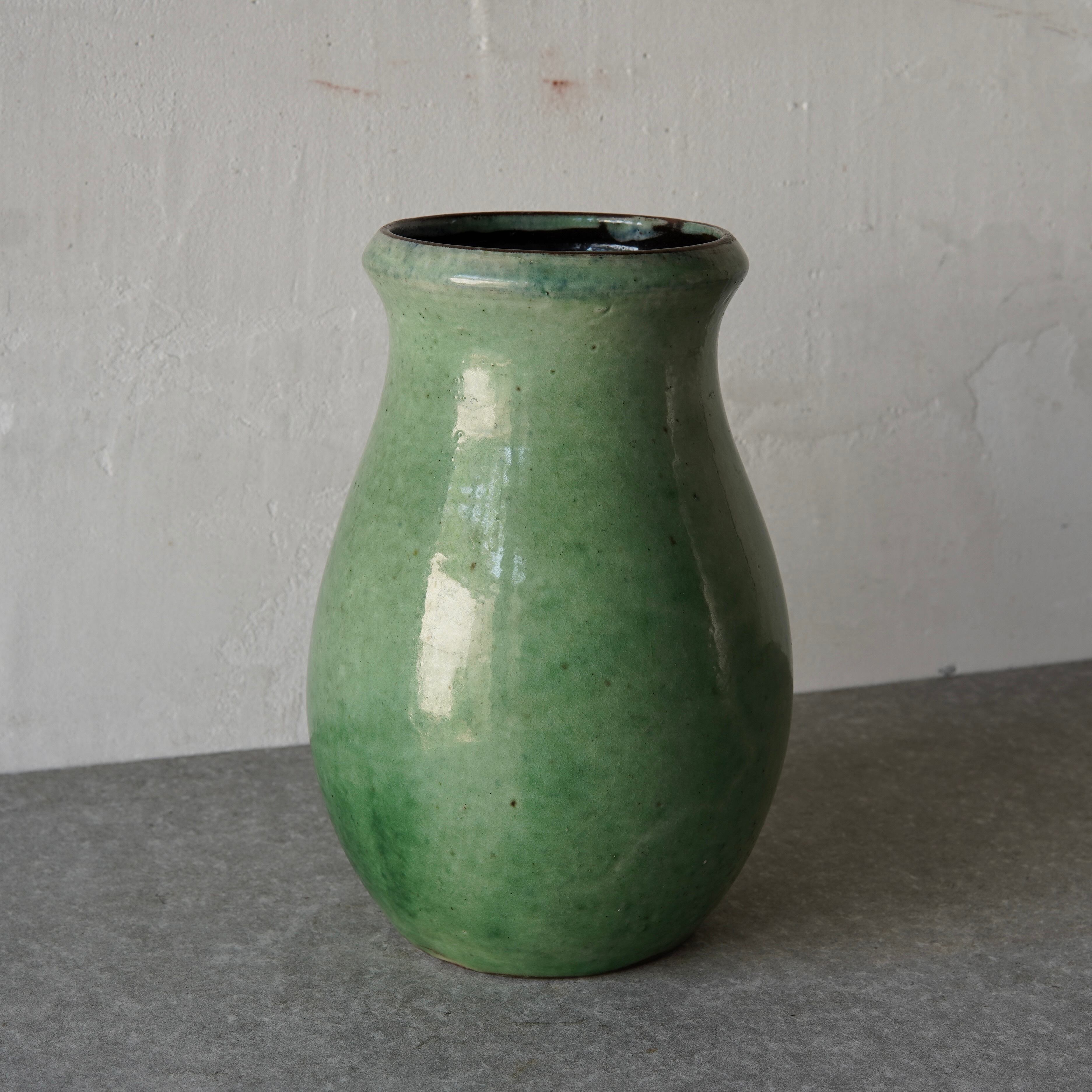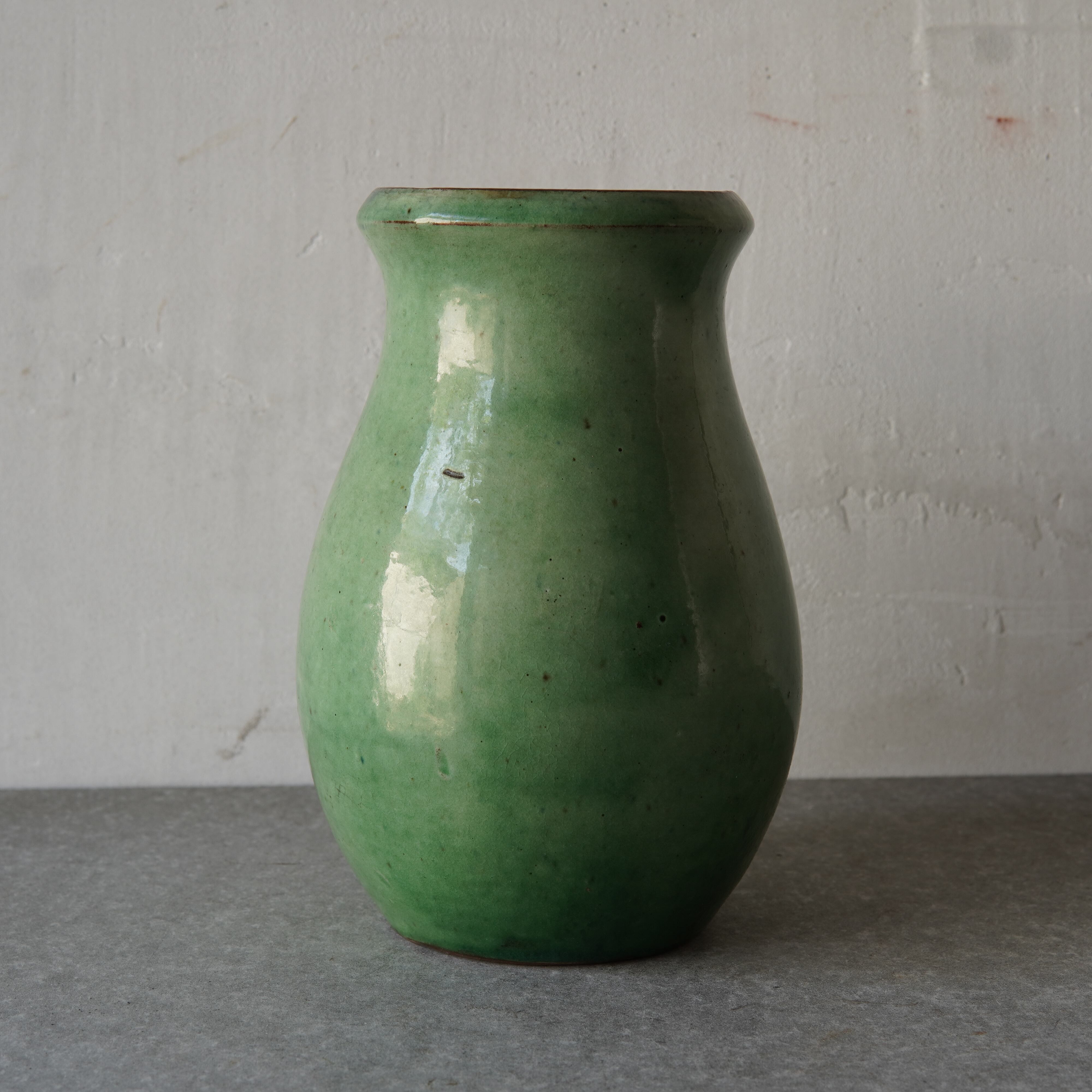 爽やかな緑釉に瓜のような造形がバランス良い作品です。