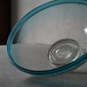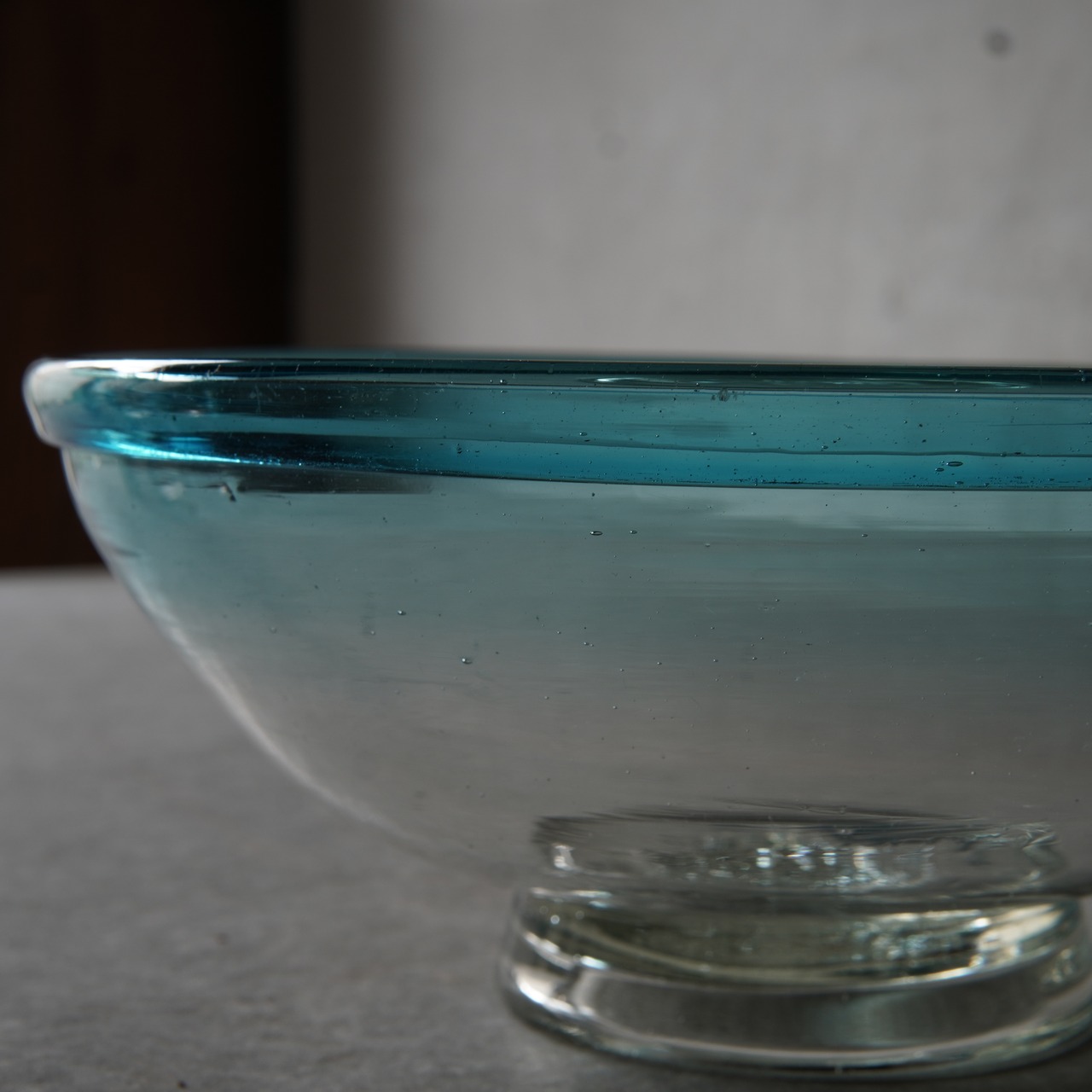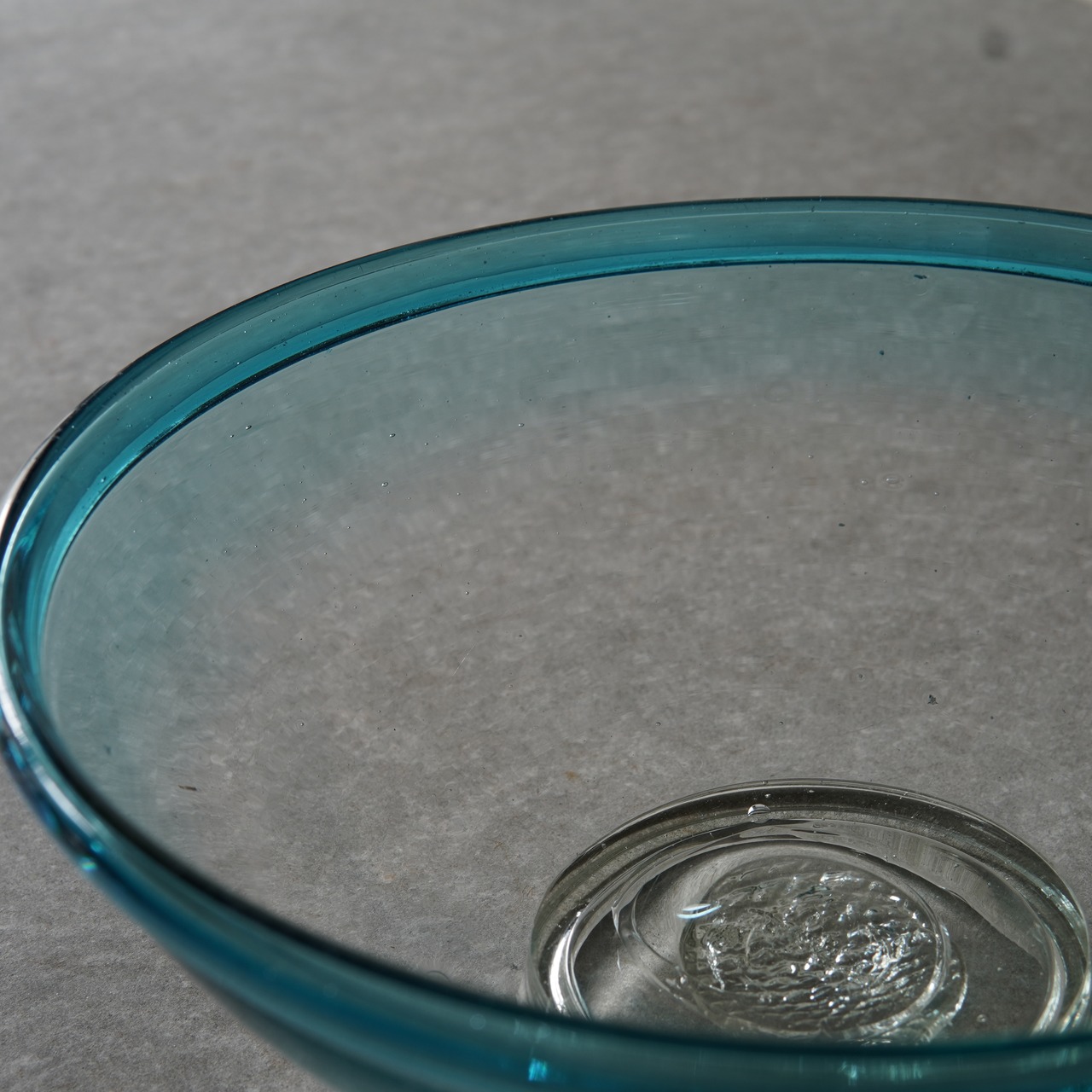 手吹きガラス特有の揺らぎが魅力的で、コバルトブルーの巻縁からも職人の高度な技が伺えます。