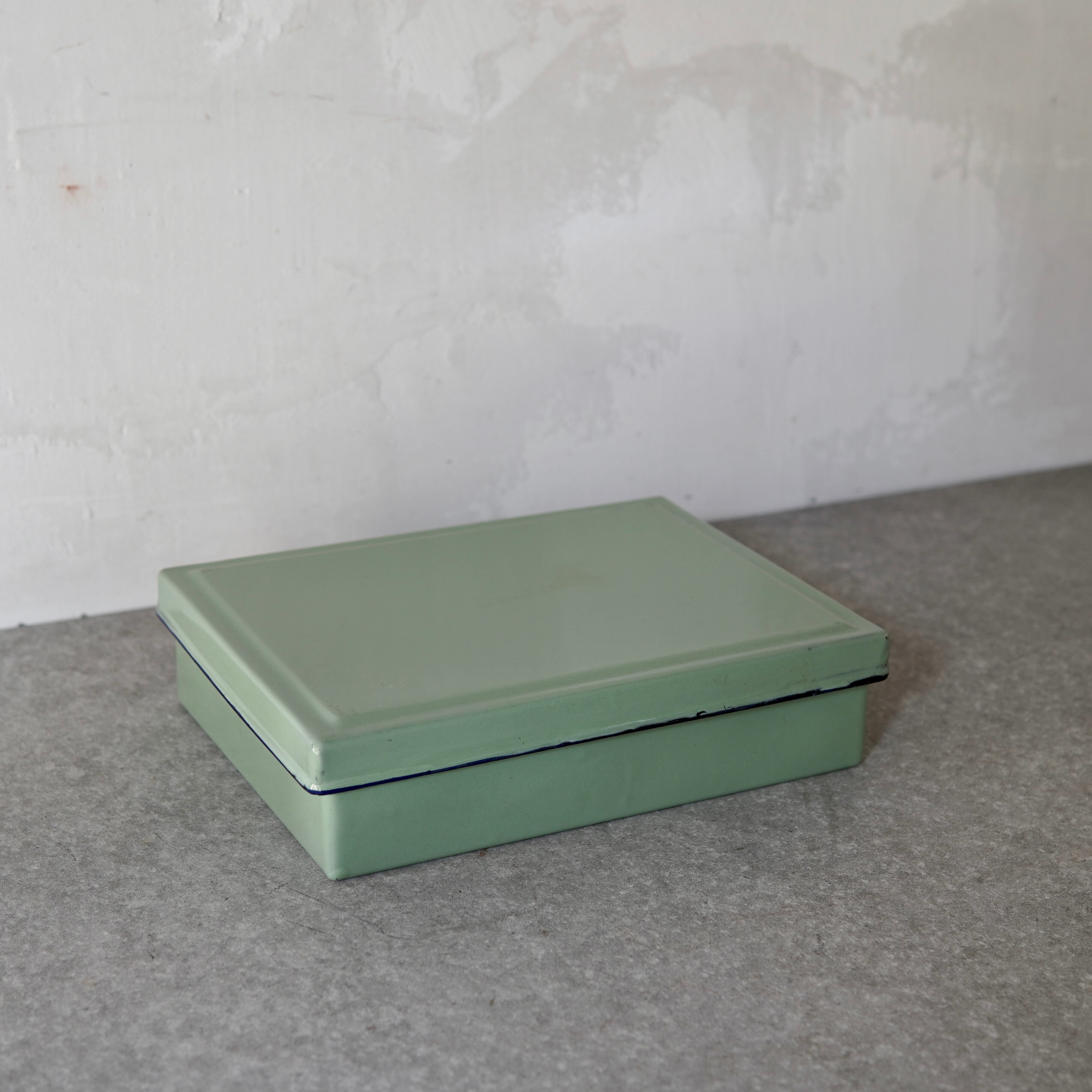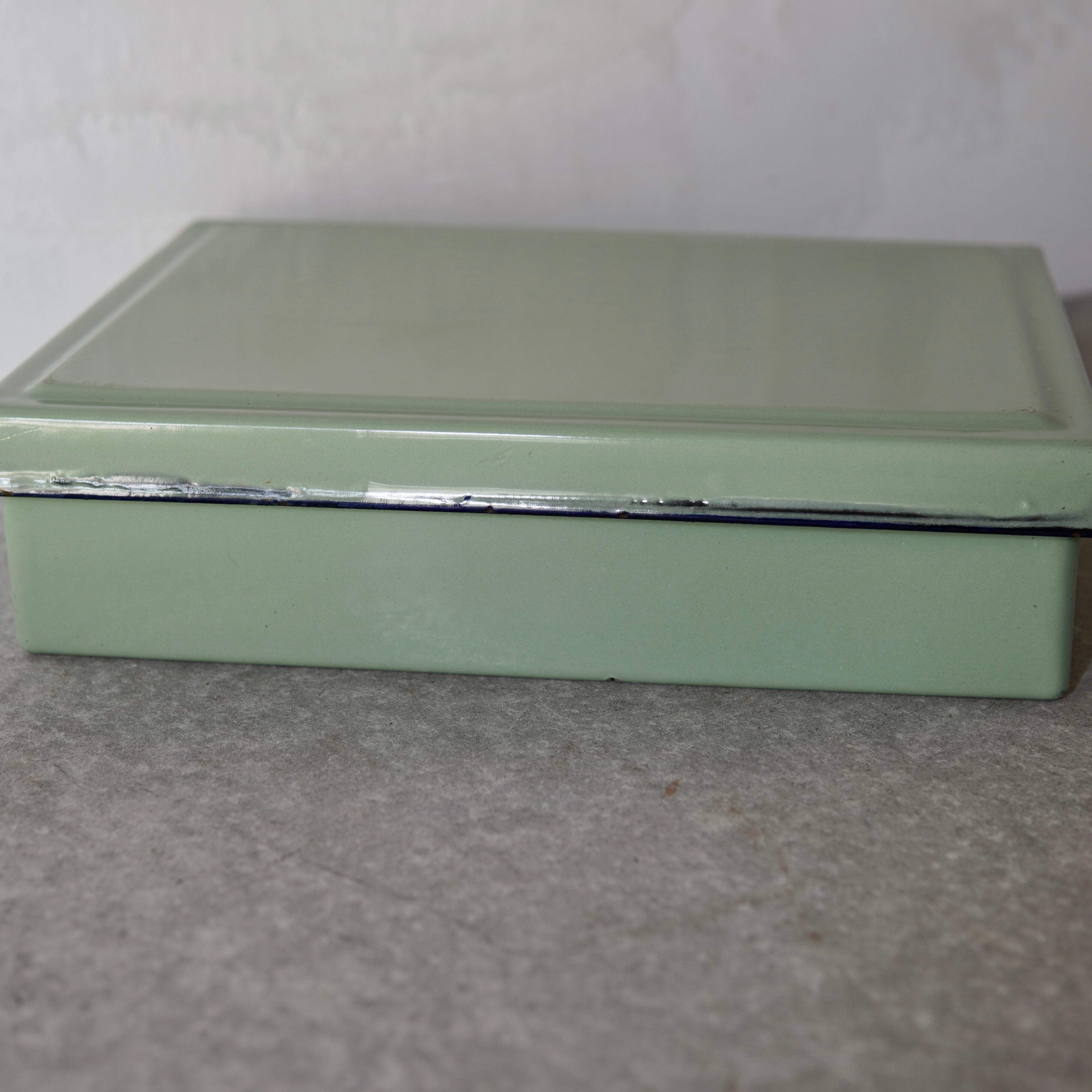 爽やかな色合いの琺瑯蓋付角バットです。