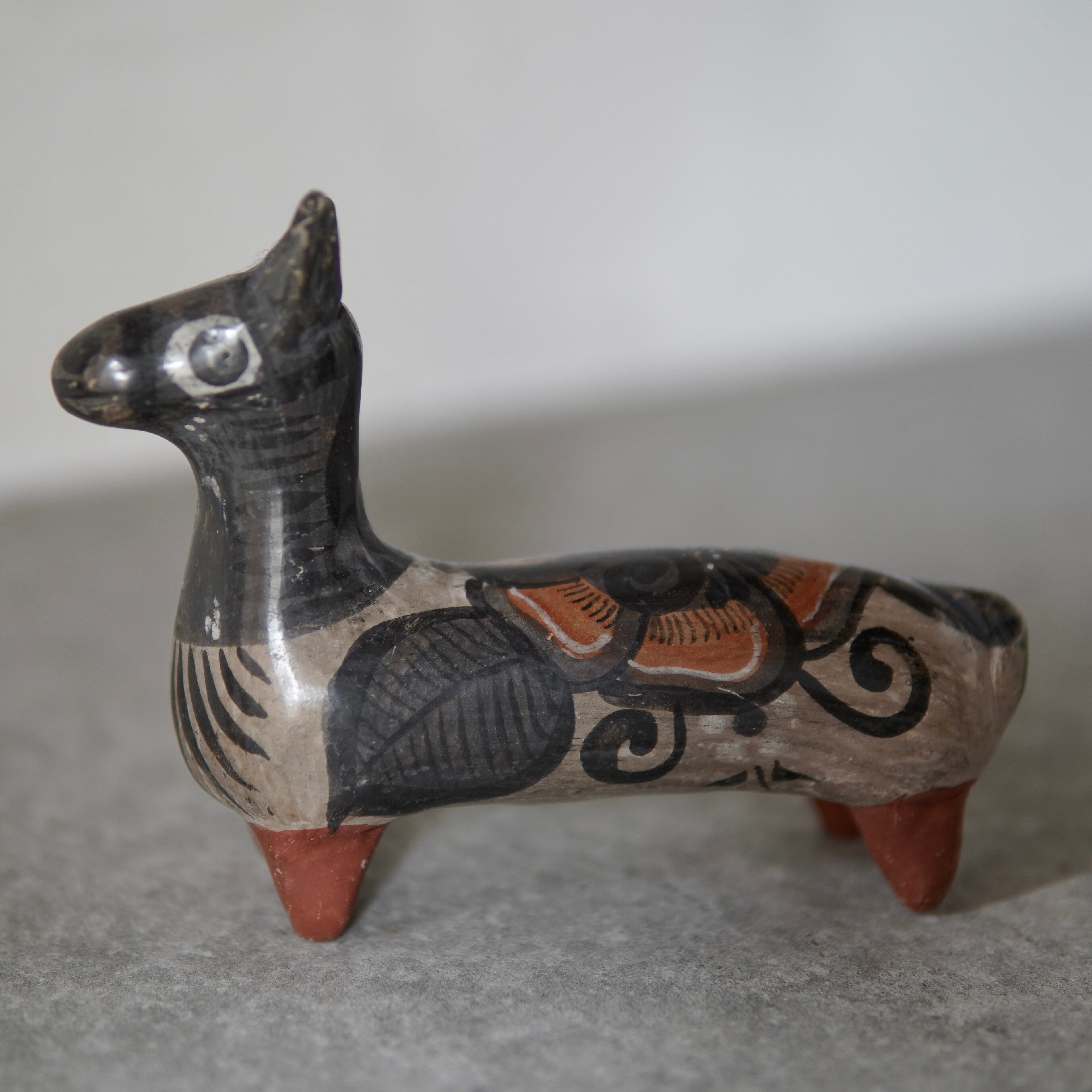 メキシコ中部トナラ地方で作られる民芸品ので、近年は釉薬をかけて簡易的に仕上げる物が多いですが、こちらはメノウ石で磨かれた本来のトナラ焼きです。