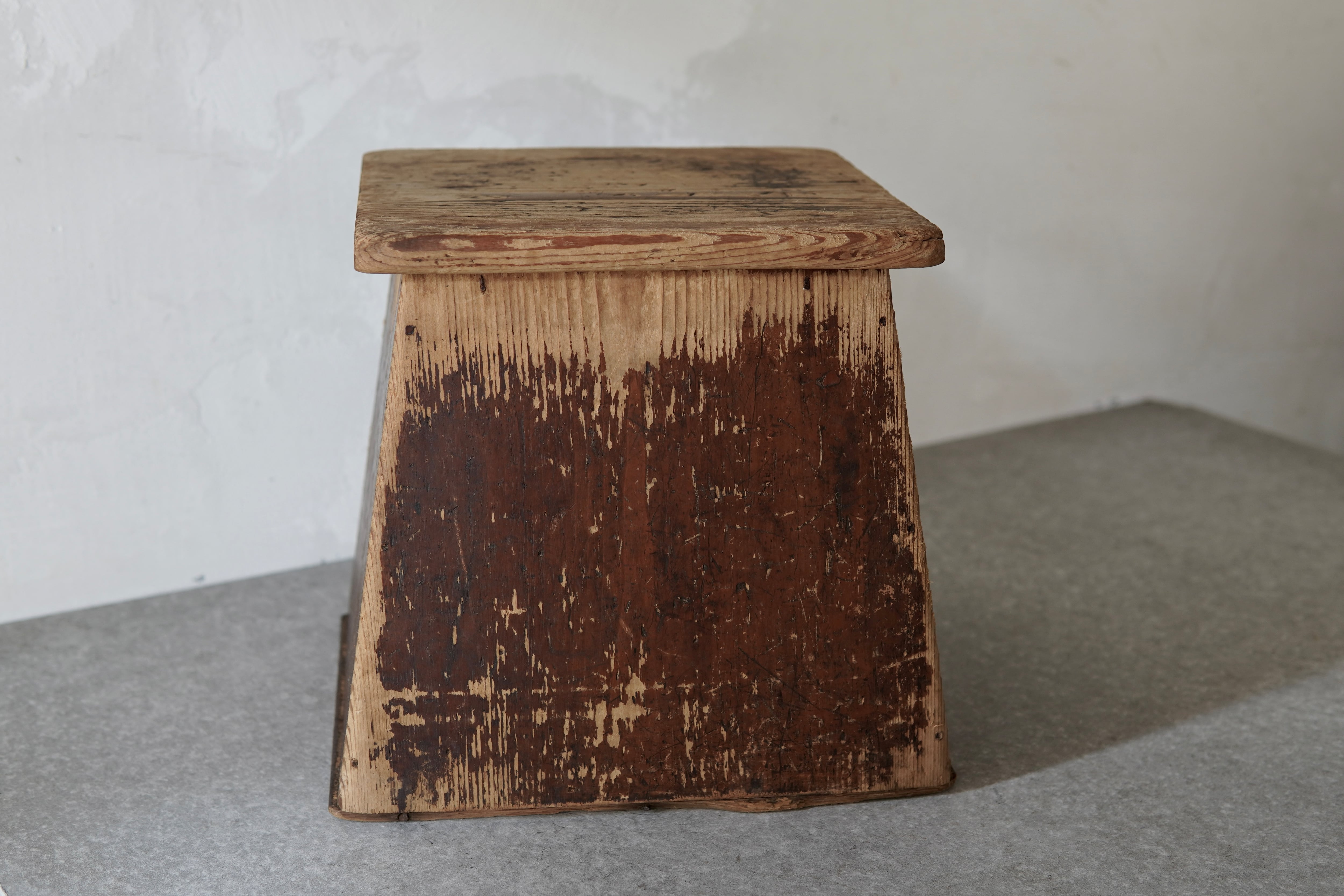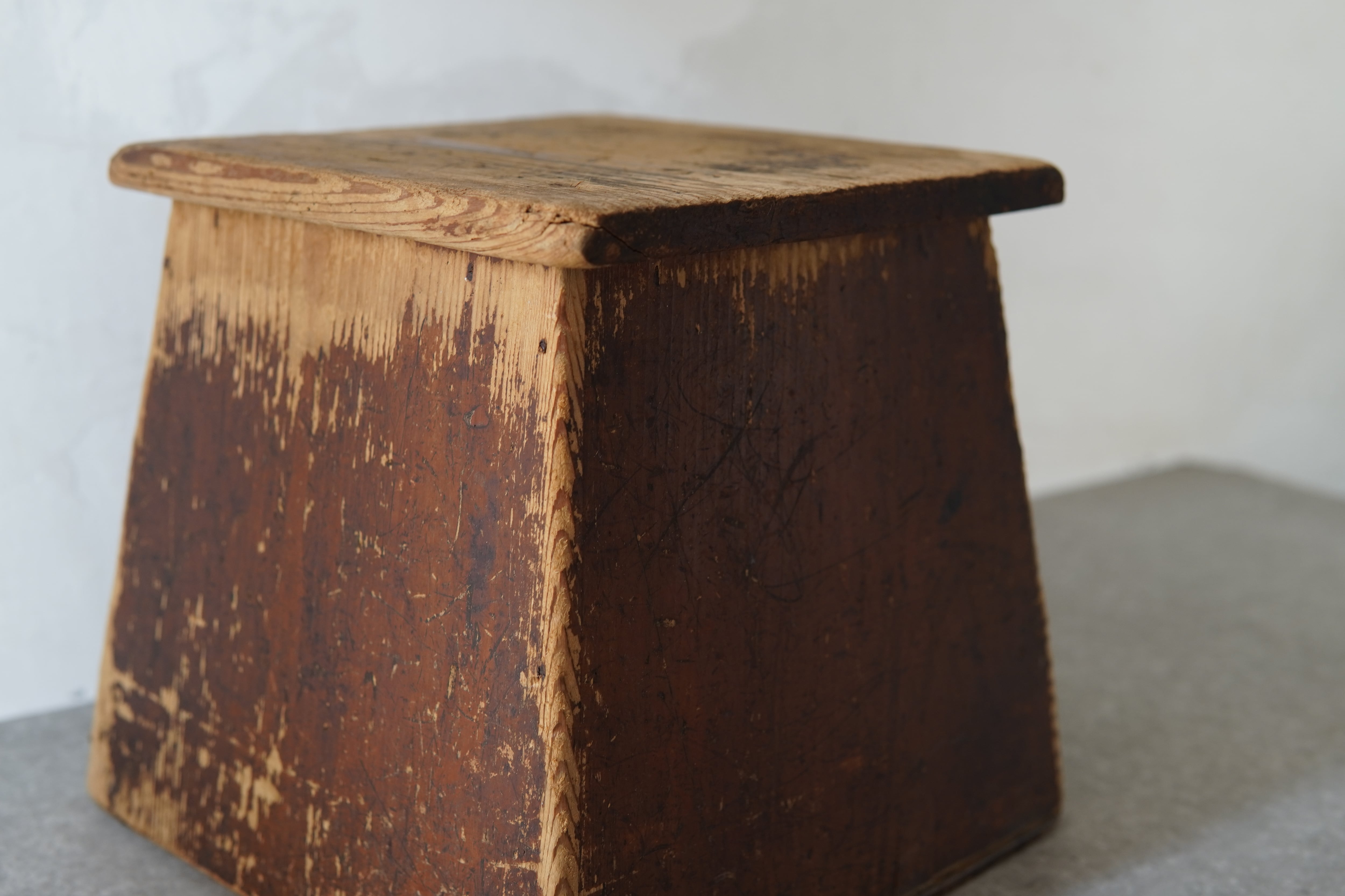 使い込まれた表情も良く、台形のシンプルな造形は花台として使いやすそうです。