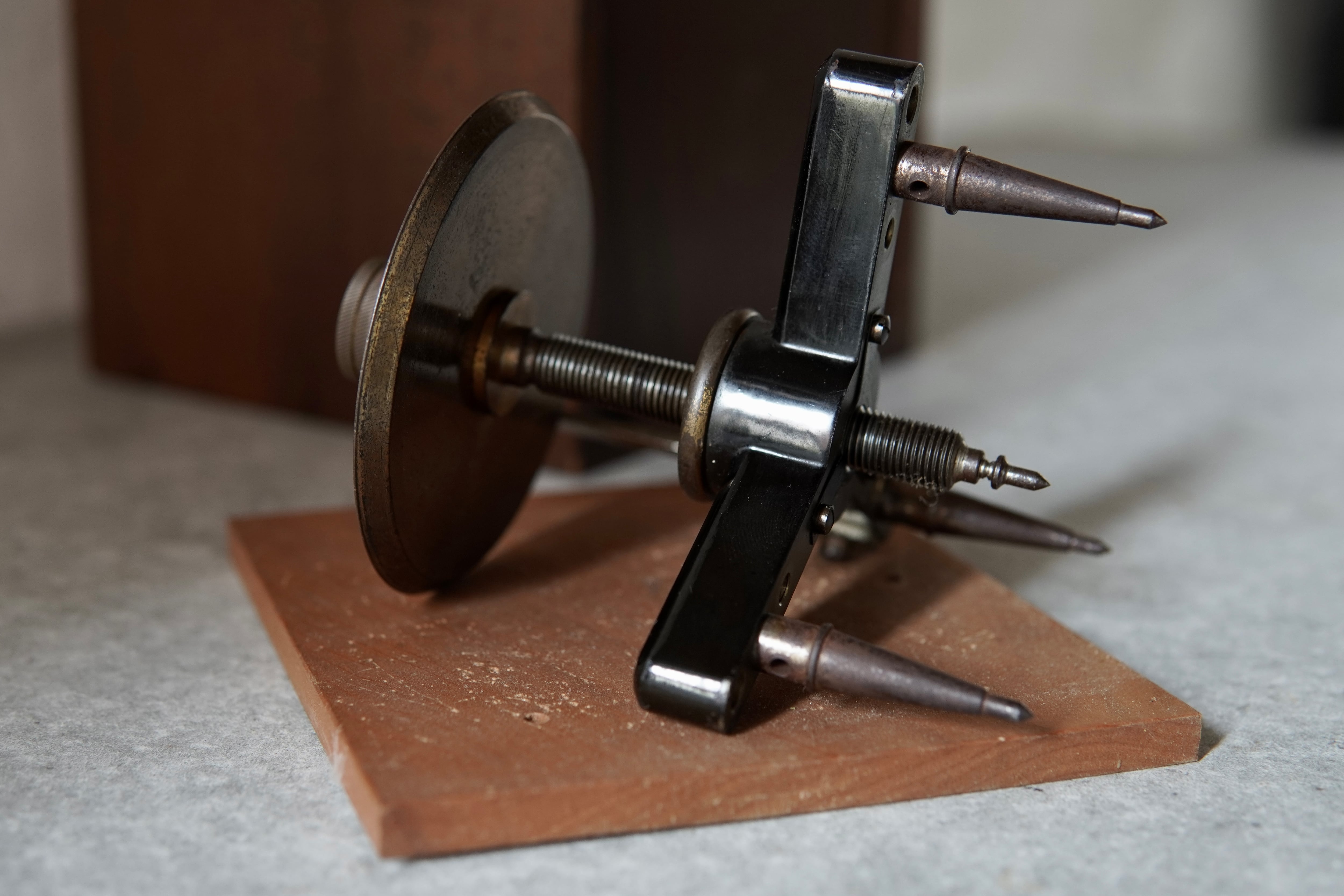 球面の曲率半径や薄板の厚さなどを測定する器具です。収納用の箱付き。
