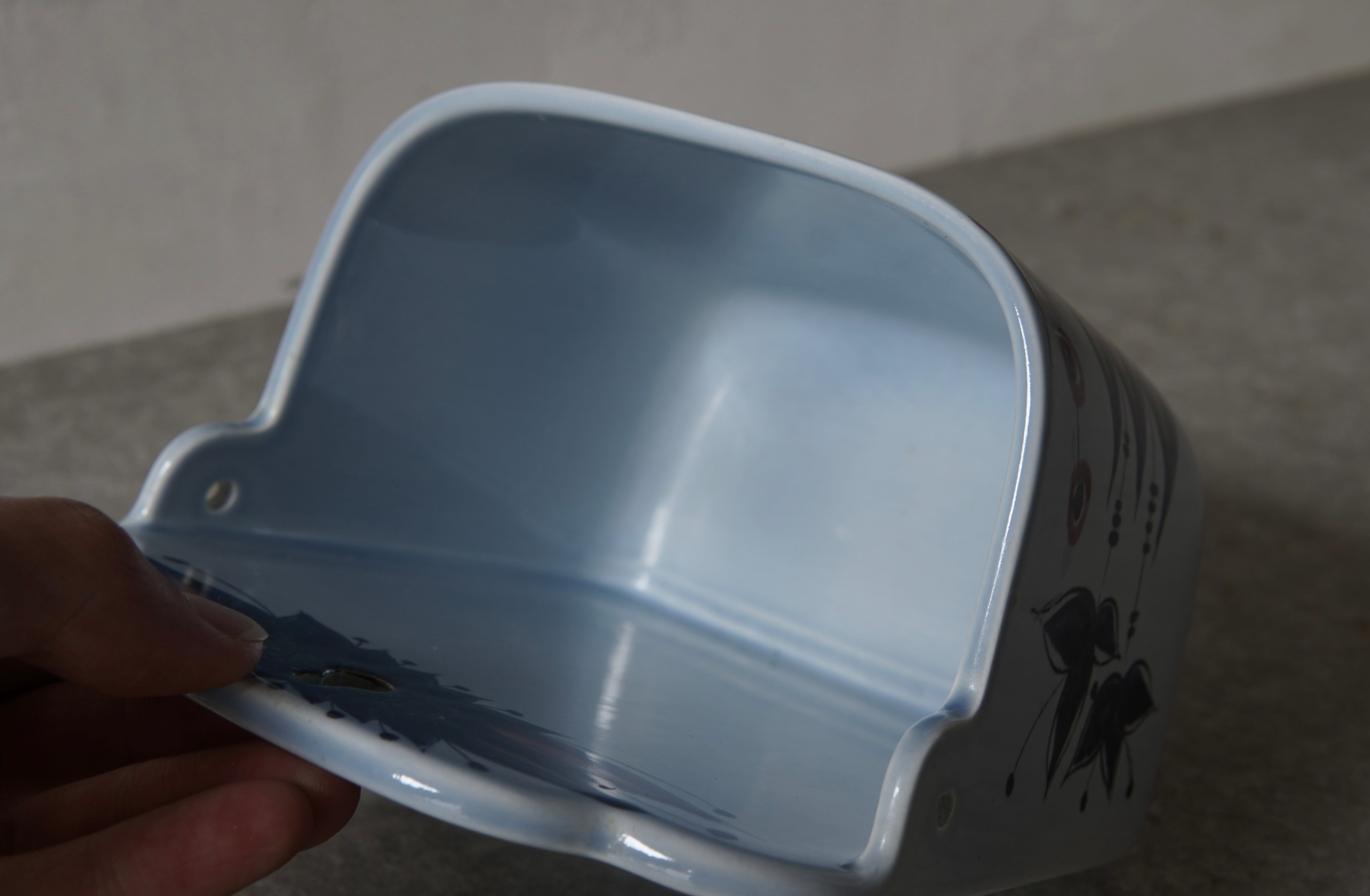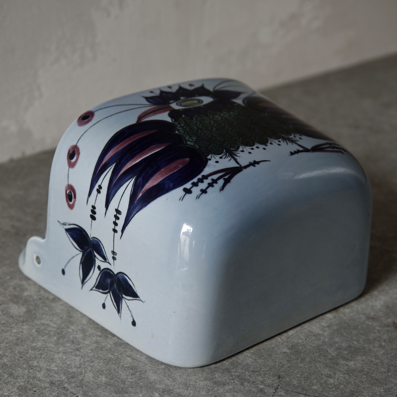 こちらは華やかな鳥が描かれたソルトボックス。蓋は欠品しておりますが、お求めやすく。