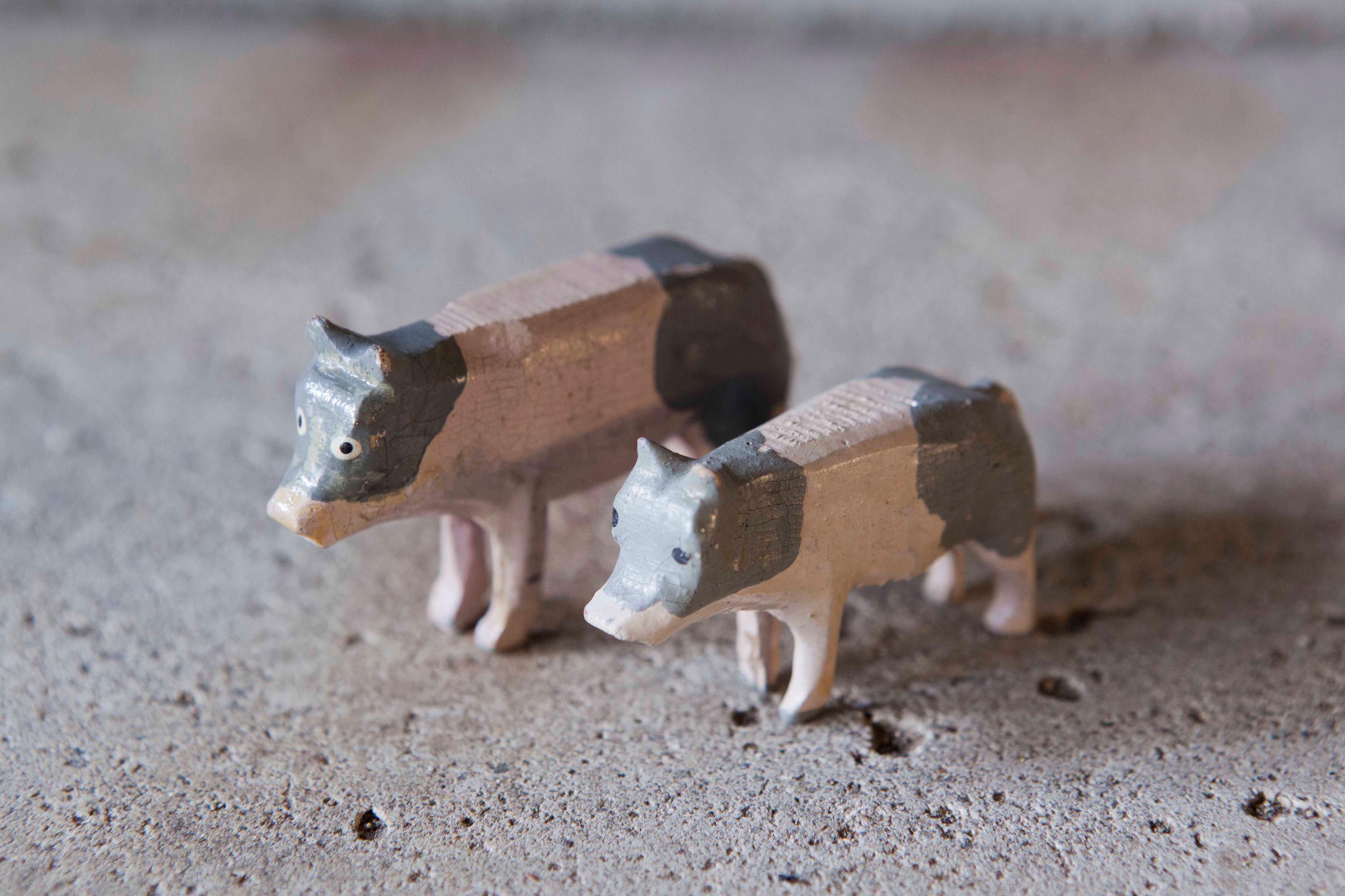 およそ100年前の、小さな木彫り動物人形。