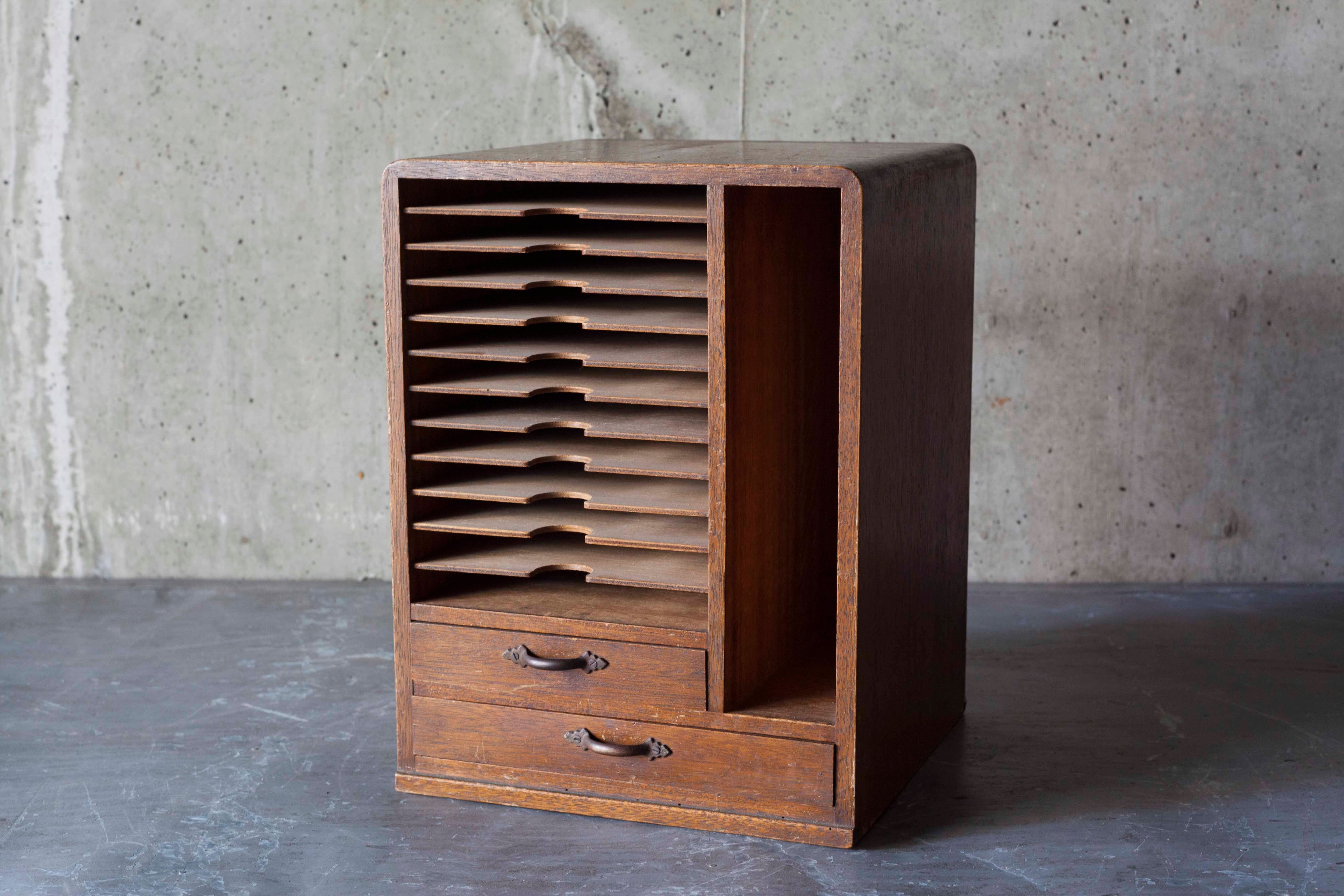 引出し付きの小ぶりなカルテ棚。