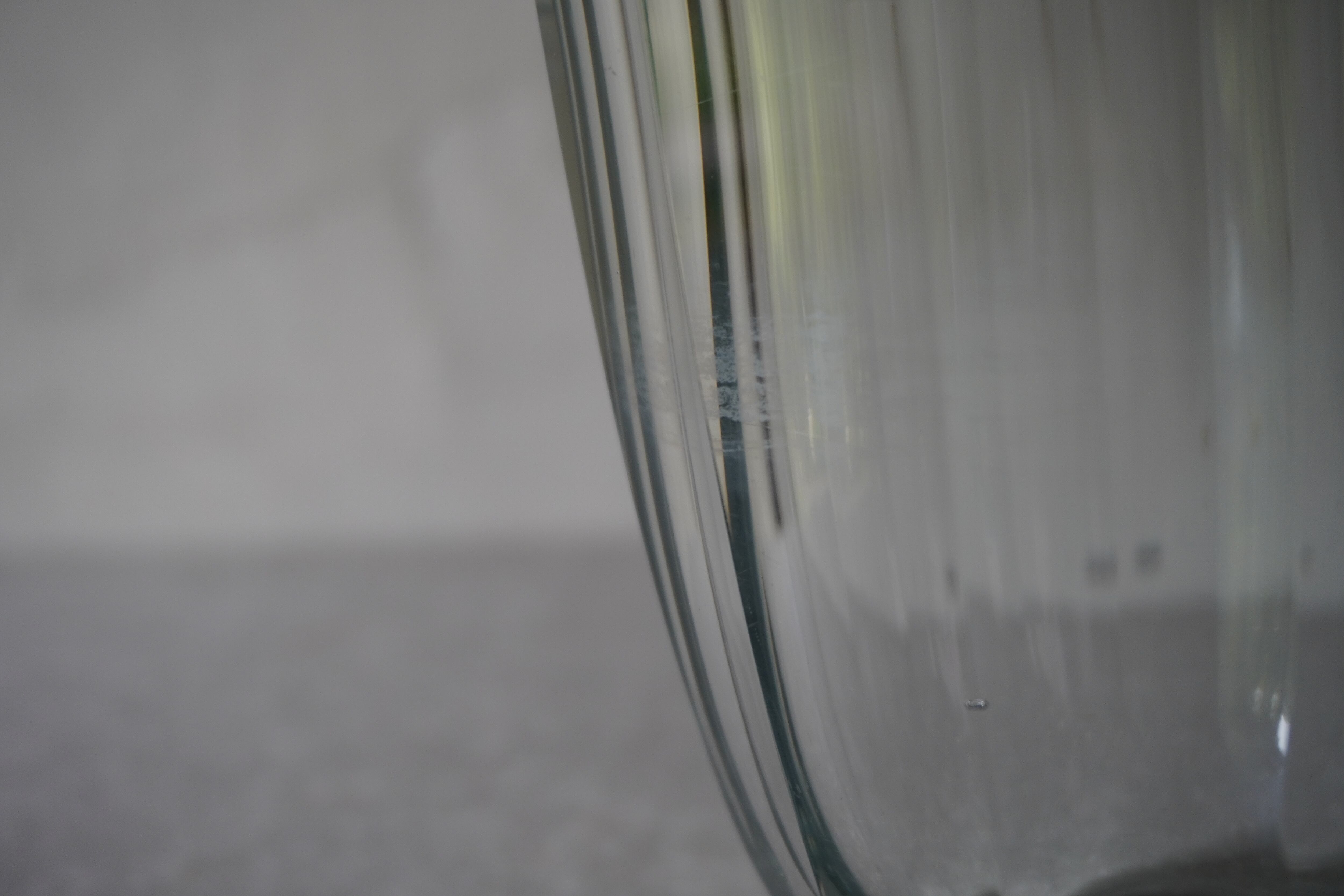 分厚いガラスの花器。ミッドセンチュリーの頃のモノだと思われます。