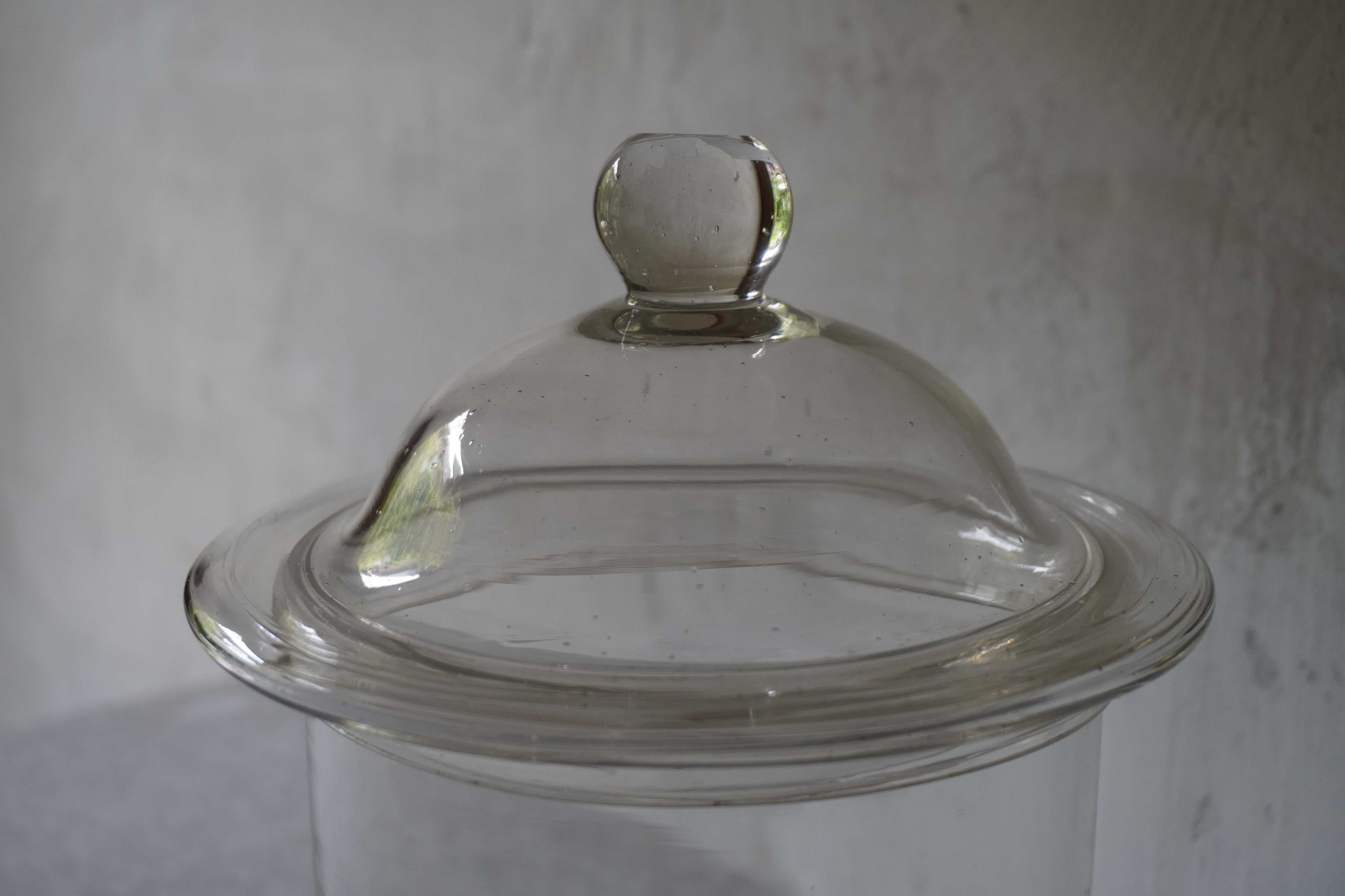 蓋の部分も吹きガラスの製法で作られた味わい深い瓶です。