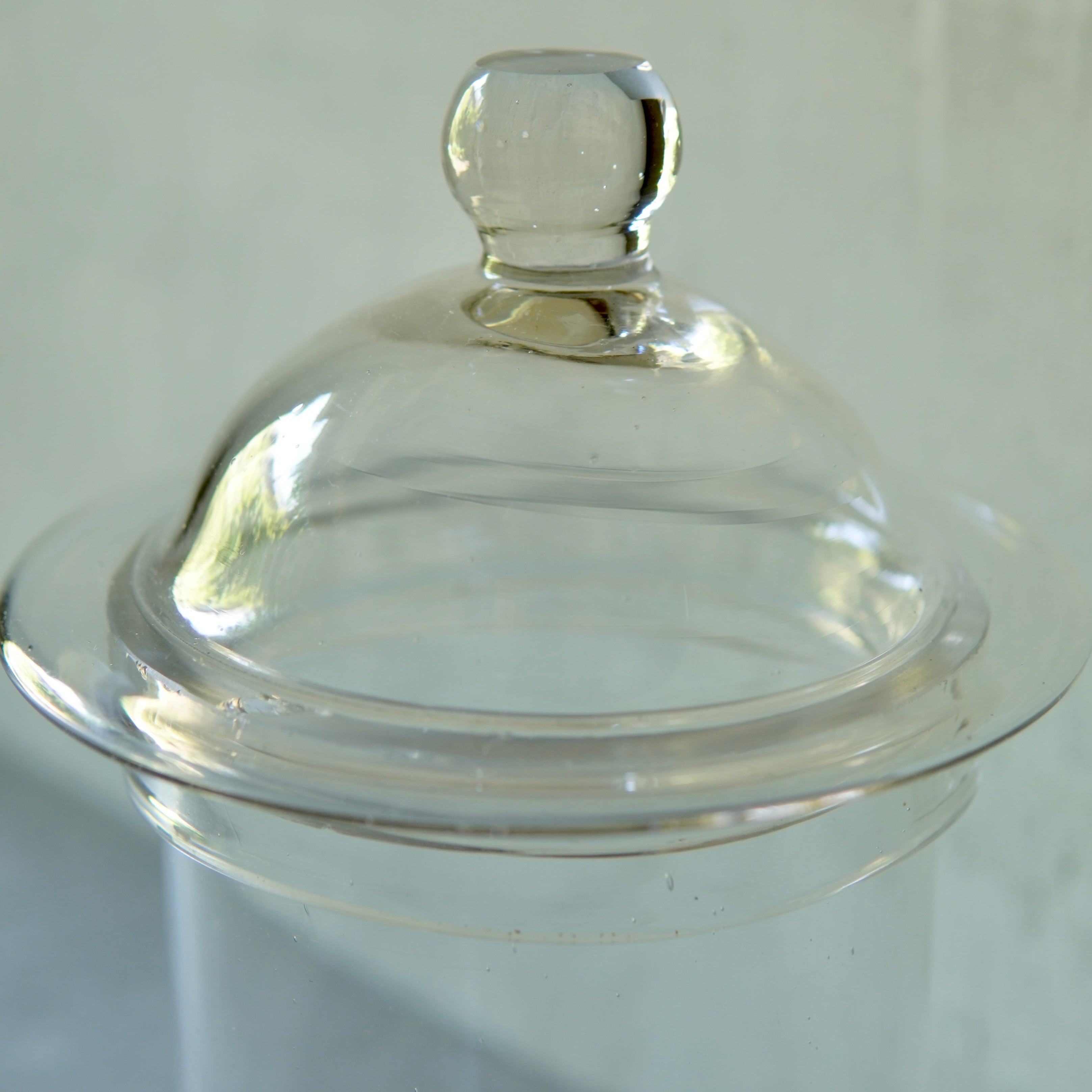 ガラスのゆらぎがとても綺麗な蓋付ガラス瓶です。