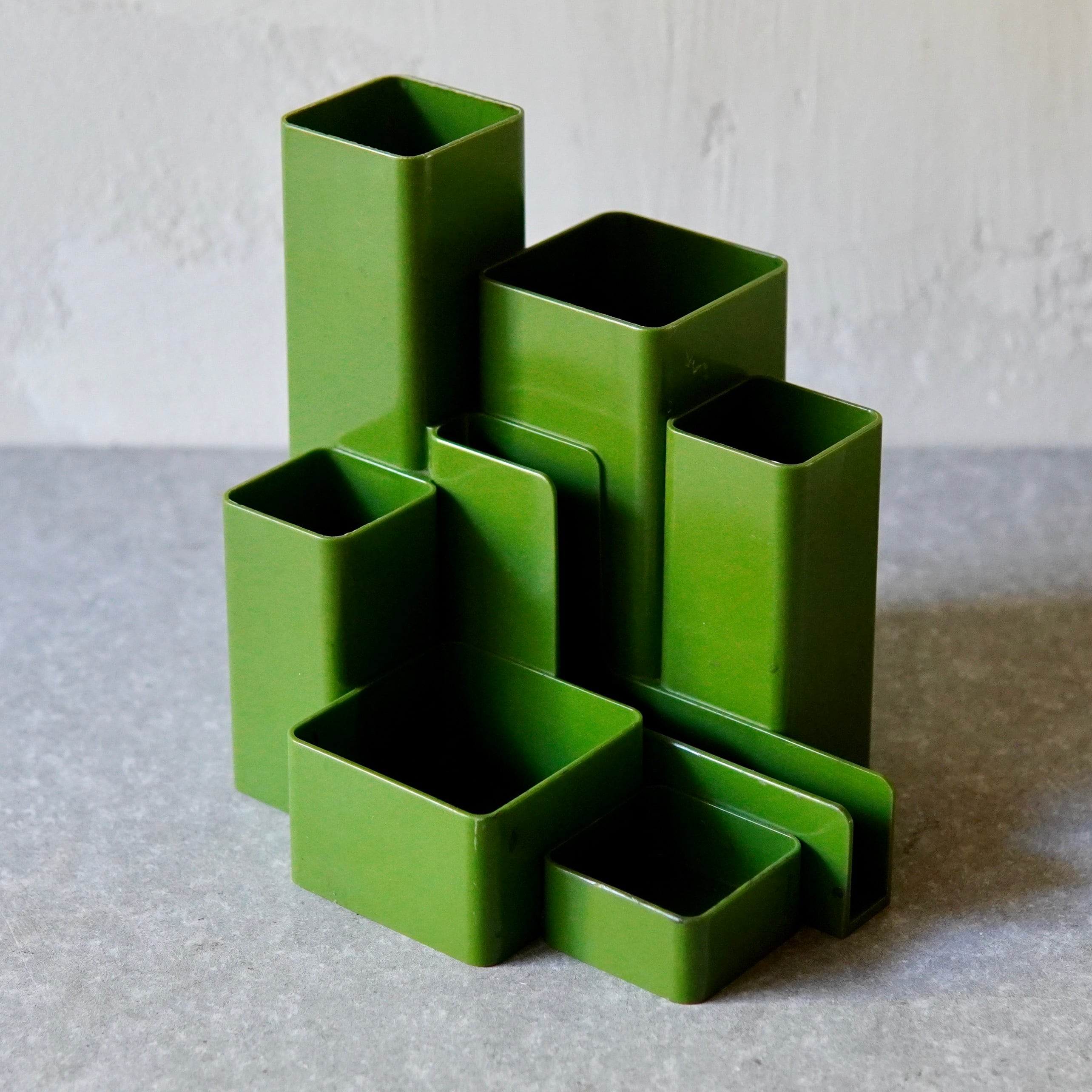 ビル群のようなデザインで文房具を機能的に立てることができます。