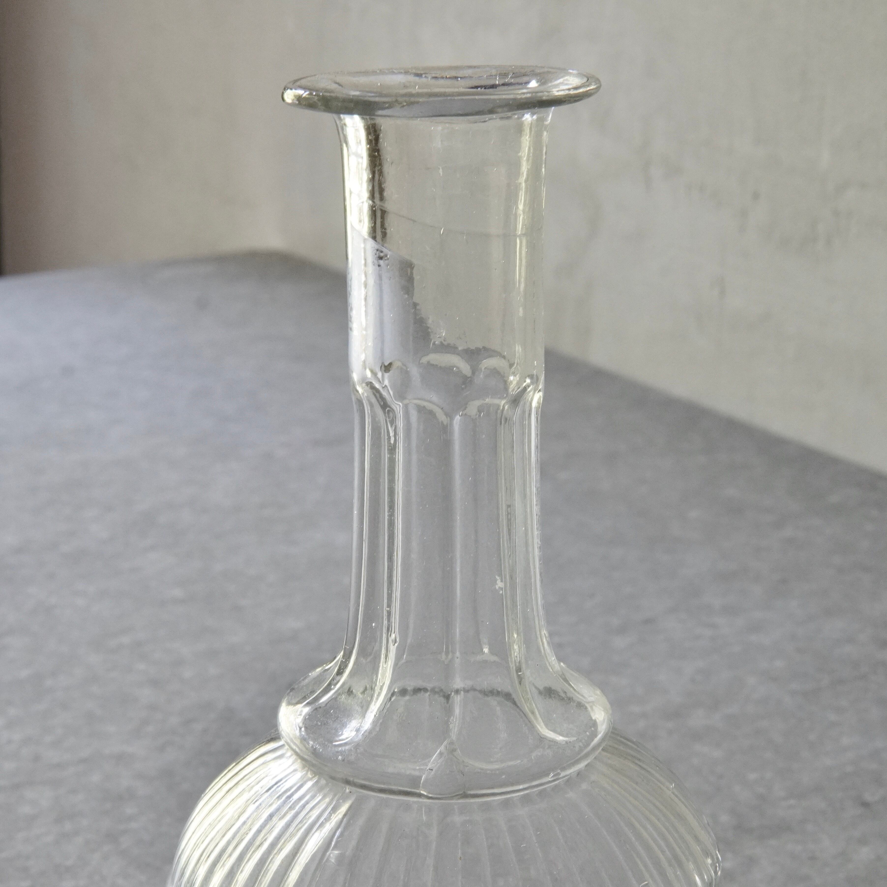 当時の初期プレスガラス製法で作られた味わい深いボトルです。