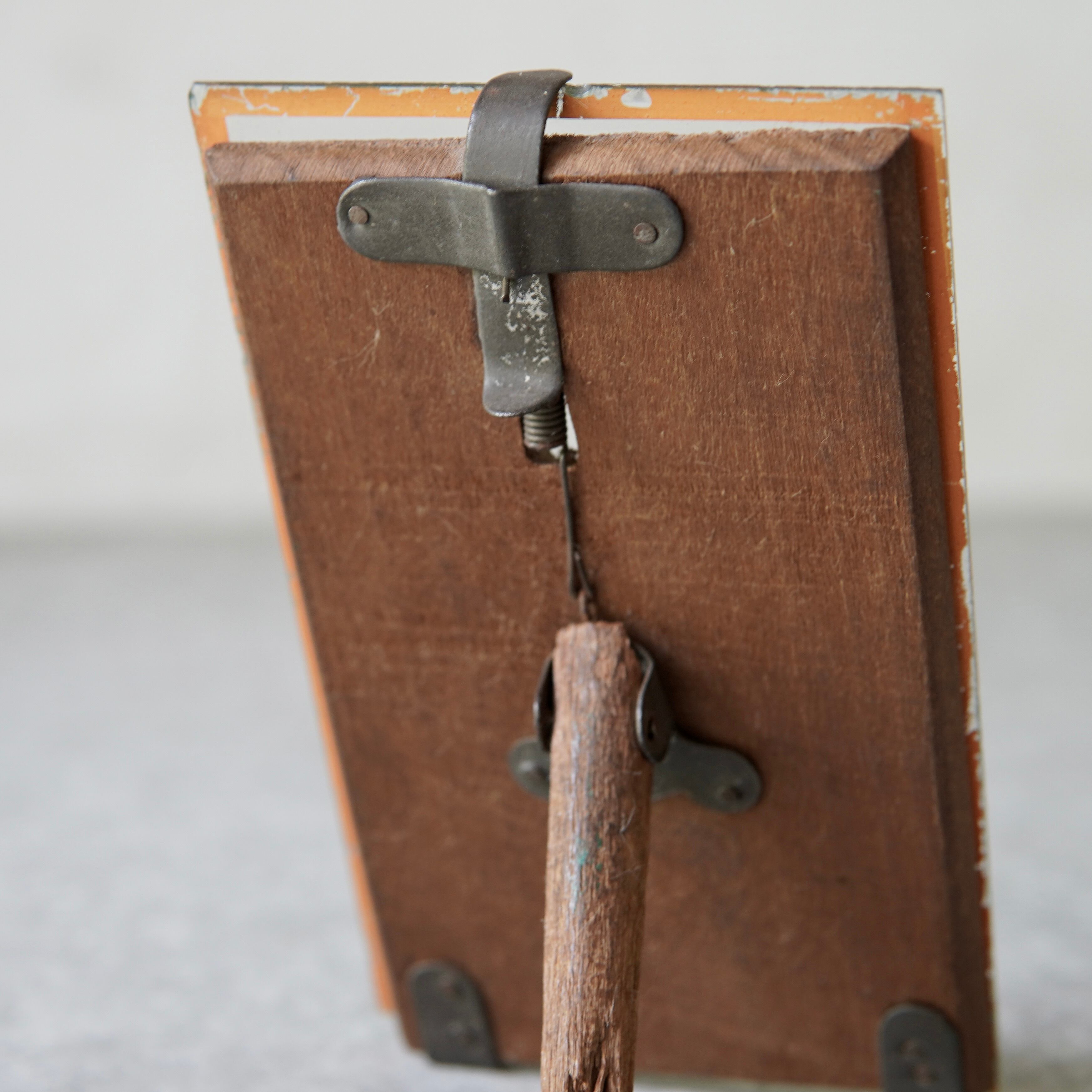 上の留め具を上げるとガラス板が取れるユニークな作り。