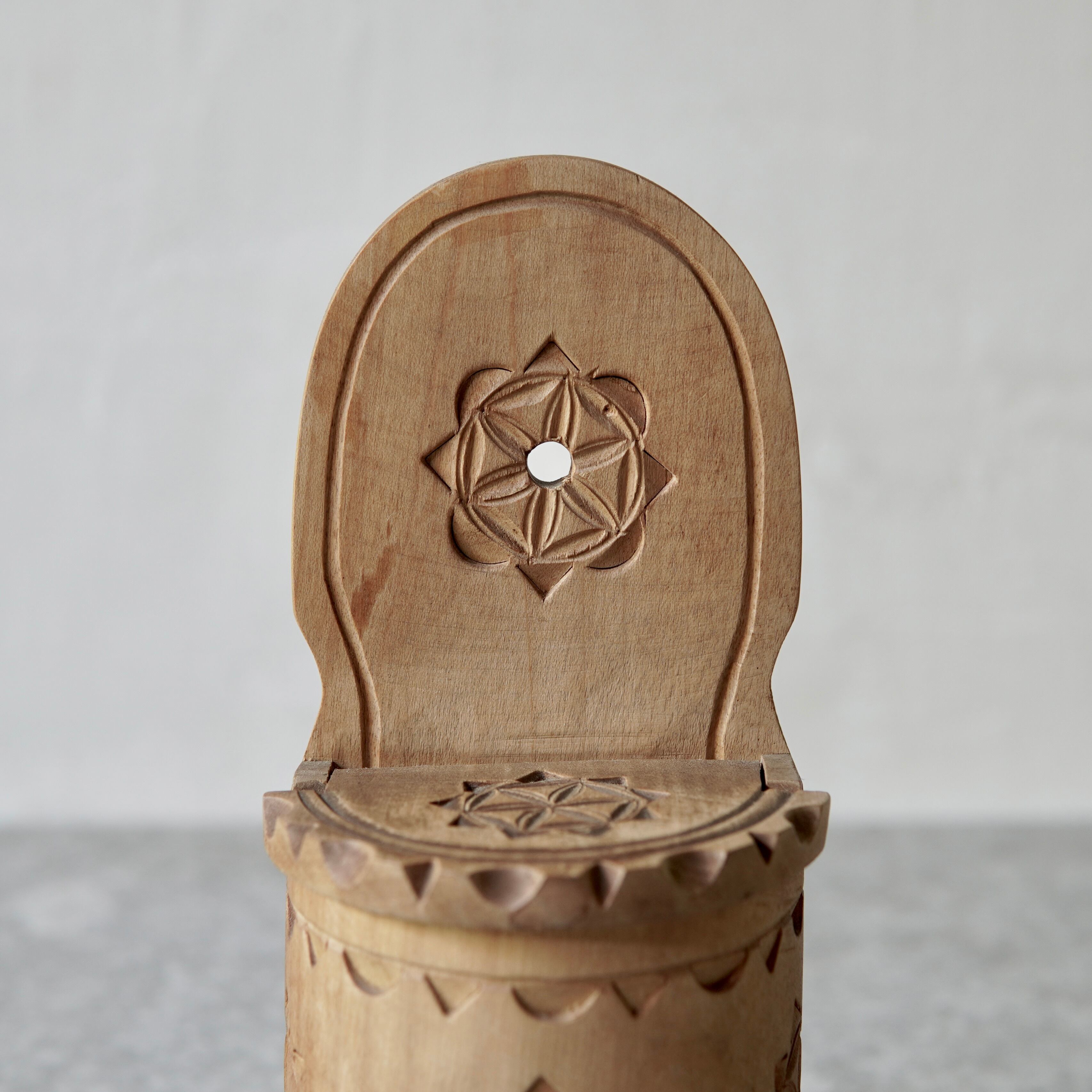 手彫りされた装飾に、シンプルな木味が北欧らしい雰囲気。