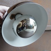 ドーム型のアッパーシェードに、丸みを帯びた下側のカバーが被さるモダンなデザイン。